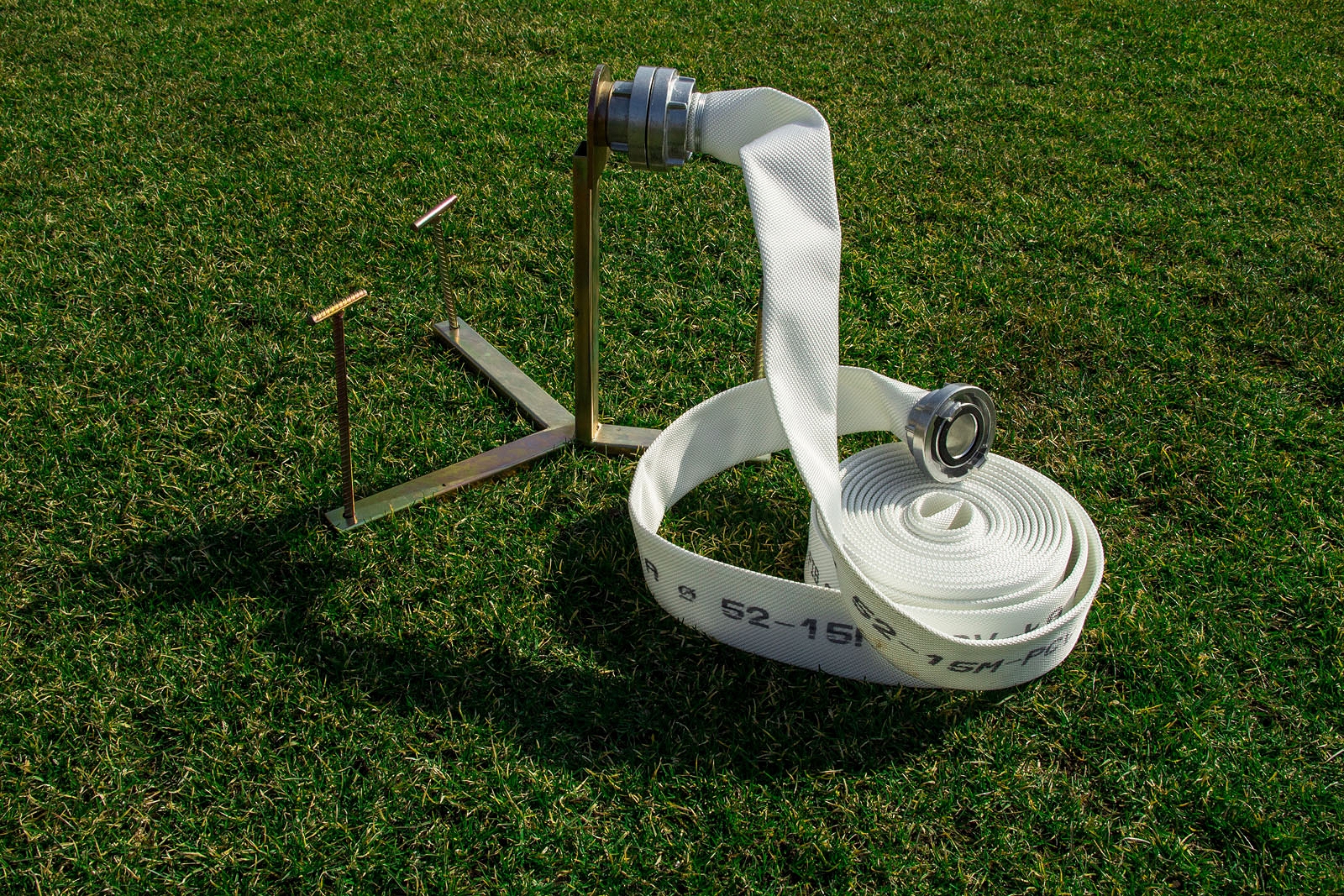 Pevná spojka C52 na stojane určená pre požiarny útok CTIF. Prekážka vyhovuje medzinárodným pravidlám CTIF.