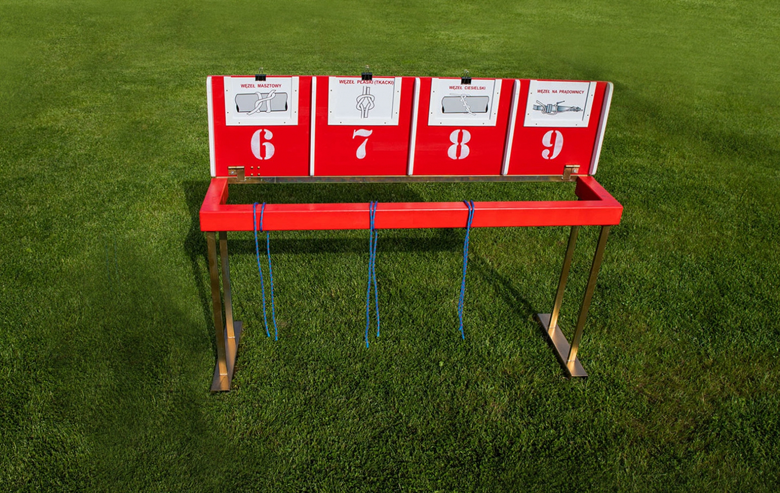 Stojan na viazanie uzlov pre disciplínu požiarny útok CTIF. Prekážka spĺňa pravidlá medzinárodných súťaží.